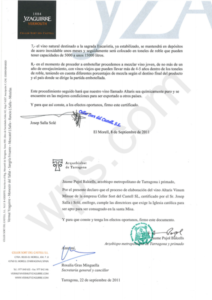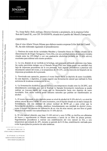 Lịch sử hãng rượu: Công ty Yzaguirre thành lập năm 1884, họ đã phát triển các sản phẩm của mình theo phương pháp truyền thống và công thức độc quyền là bí mật của hương liệu và hương vị. Không ngừng cải tiến đổi mới phát triển và hiện đại hóa quá trình sản xuất để chất lượng rượu được đảm bảo hơn. Điều khác biệt Sort del Castell thành công của nó trong việc duy trì chất lượng sử dụng các phương pháp sản xuất truyền thống mà không phủ nhận lợi ích của một cơ sở hiện đại thích nghi hoàn hảo với nhu cầu của thế kỷ 21. Trên thực tế, trụ sở hiện tại đã được khánh thành vào năm 1999 ở ngoại ô thị trấn Morell.