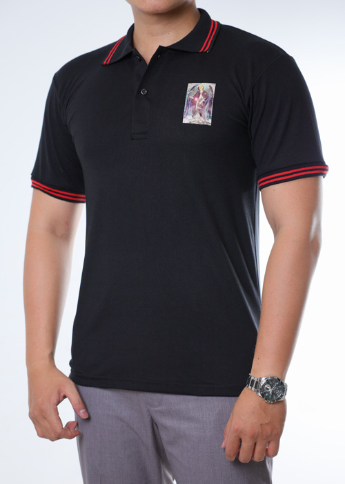 Aó Thun Vải Cá Sấu Màu Đen Viền Đỏ 04