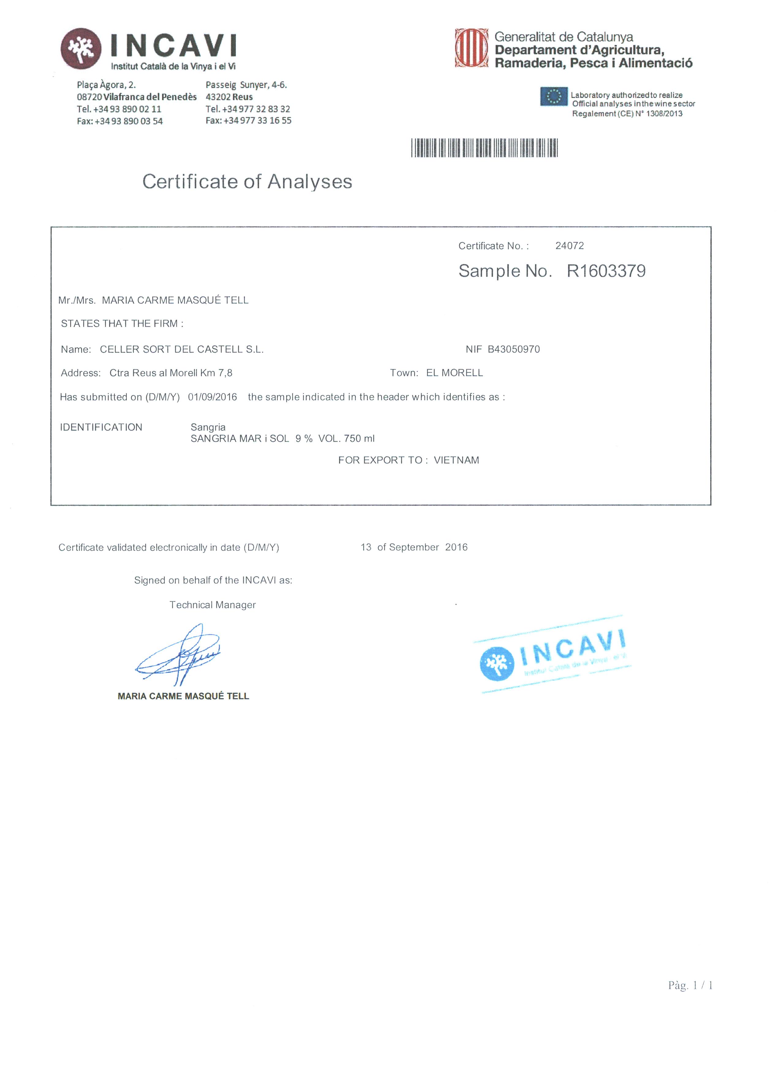 Lịch sử hãng rượu: Công ty Vermouth Yzaguirre thành lập năm 1884, họ đã phát triển các sản phẩm của mình theo phương pháp truyền thống và công thức độc quyền là bí mật của hương liệu và hương vị. Không ngừng cải tiến đổi mới phát triển và hiện đại hóa quá trình sản xuất để chất lượng rượu được đảm bảo hơn. Cùng với sự nỗ lực theo đuổi để đạt được chất lượng tốt đã tạo điều kiện cho công ty phát triển mở rộng ở cả 2 thị trường Tây Ban Nha và Quốc tế, và rượu lễ Vinum Altaris J.Salla đã có mặt tại 35 quốc gia ở Châu Âu, Châu Á, Châu Mỹ và Châu Phi.