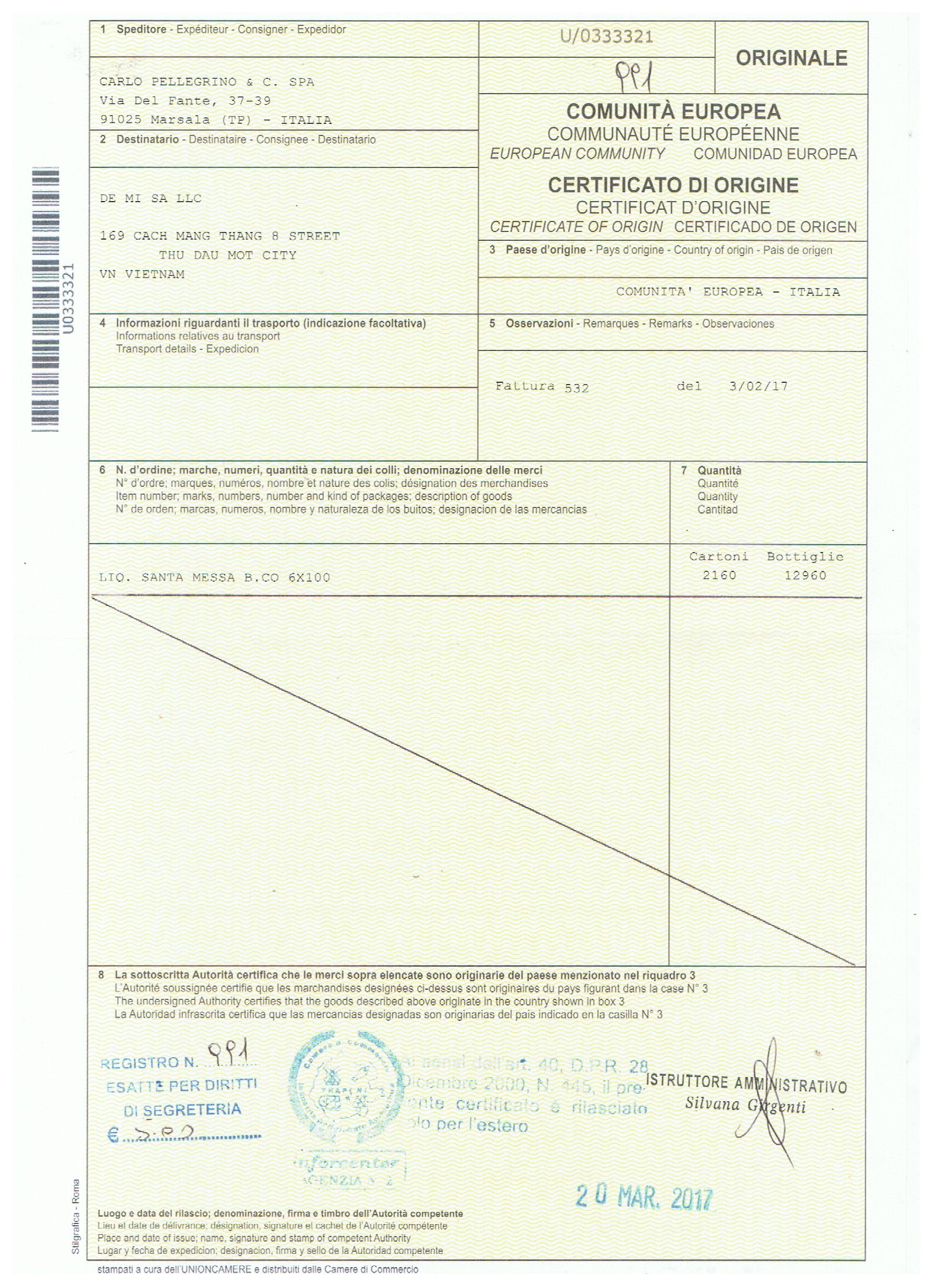 Giấy Chứng Nhận Xuất Xứ