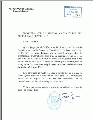 Lịch sử hãng rượu: Trong vùng đất của Turis, từ thời Ibero-La Mã, vườn nho đã được trồng. Và nhờ vào danh tiếng từ niên đại Trung Cổ của các loại rượu vang tuyệt vời của các vùng đất của Turis,vua Philip IV (1626) tìm thấy các loại rượu vang chất lượng hàng đầu Turis. Thời Reconquista, trong thế kỷ thứ mười ba, vua James I đã đặt tên của Baron de Turis như một phần thưởng cho Gombalda Entença cao quý người đi cùng James I trong các chiến dịch của mình trong vùng đất của Valencia. Kể từ đó, Turis luôn sản xuất rượu vang chất lượng và rất đánh giá cao và năm 1920, 70 nông dân đã được liên kết với những mục đích sản xuất rượu vang chất lượng và quản lý tốt hơn các vườn nho của họ; và các hợp tác xã "La Baronia de Turis" đã được tạo ra. Trong những năm gần đây, các Barony của Turis có công suất thu hoạch trung bình từ 4 đến 5 triệu kg nho.