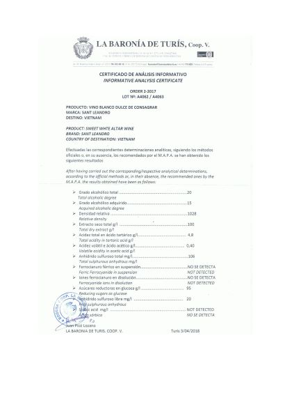 Quy trình sản xuất và hương vị: Sant Leandro là rượu vang làm từ nho trắng Malvasia và được thu hoạch khi những trái nho chín mộng trong vườn nho lâu đời nhất, được lên men ở nhiệt độ thấp trong các thùng thép không gỉ để giữ được hương vị của nho.